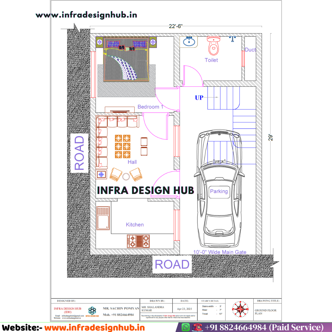 This 22.5×29 Sqft House Design is a fully detailed, construction-ready house design package prepared for a 2 storey residential building, covering every drawing required from planning to execution.
