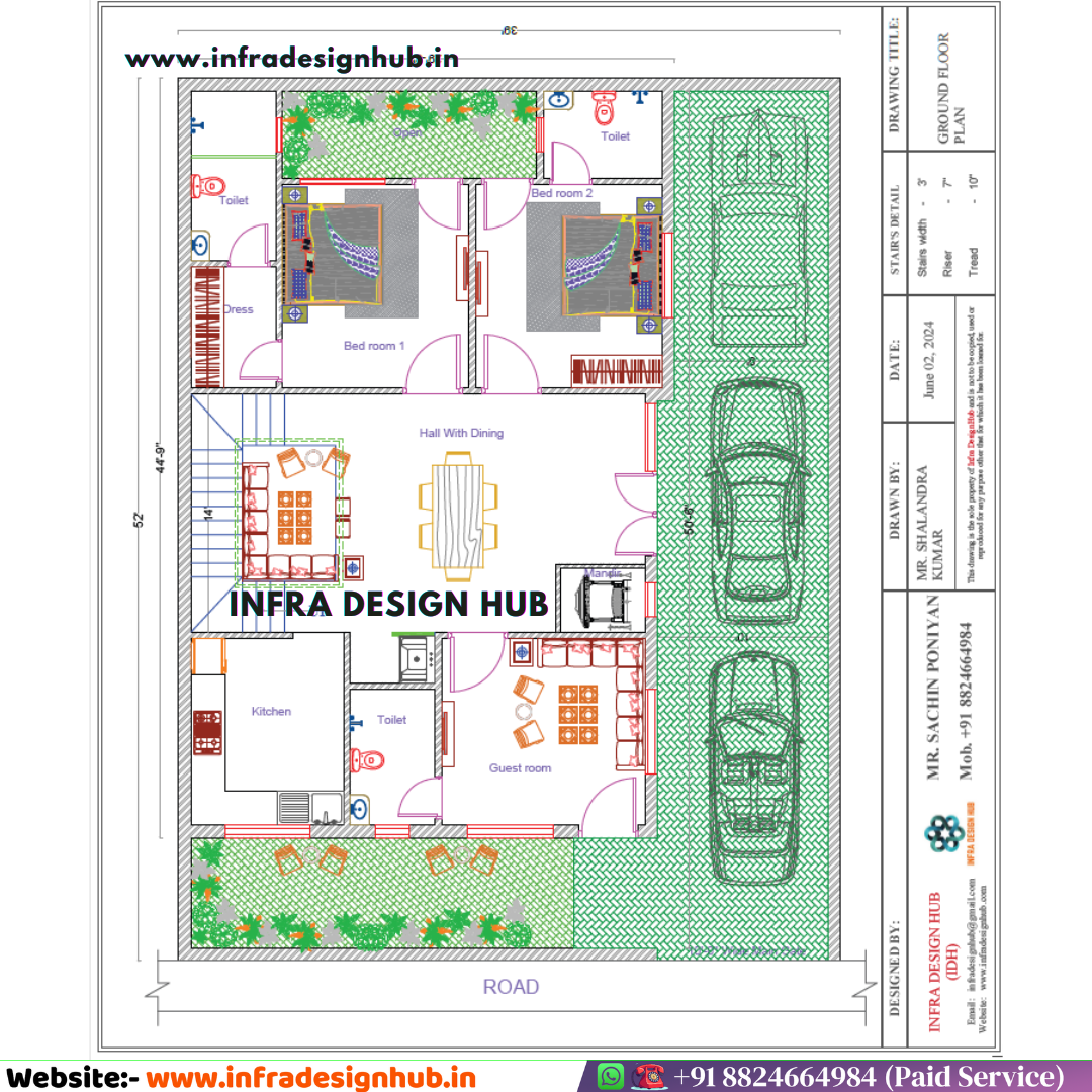 📥 Instant Download Now – Get a professionally designed 39×52 Sqft (225 Gaj) Ground Floor Floor Plan that also works as a practical 39×52 house plan from Infra Design Hub and build a comfortable, well-planned home with confidence.