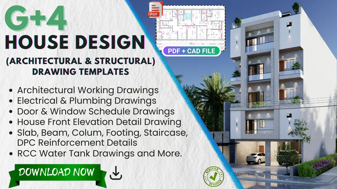 Get a complete set of G+4 Building Detail Drawing Templates with architectural, structural, electrical & plumbing layouts — all in editable AutoCAD (DWG) and PDF formats. Perfect for architects, engineers, and contractors handling multi-storey building projects.